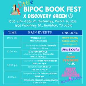 The Little BIPOC Book Fest invites children ages 3 to 10 to explore diverse books featuring Black, Indigenous and People of Color experiences with local children’s authors and book vendors. This year’s festival is hosted by storytime performer Miss Alivia Reads and spotlights an interactive dance exploration of culture and movement with Houston performance artist Stacey Allen, the author of “D is for Dance: Dancing Through the Diaspora.”