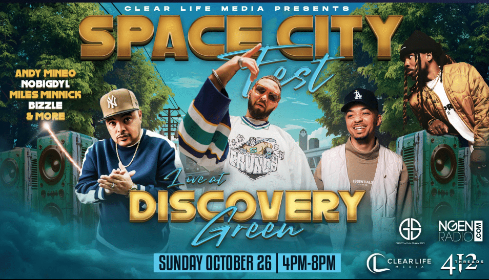 Space City Fest es un evento de concierto gratuito y familiar en el corazón de Houston, que presenta a algunos de los mejores artistas de hip hop cristiano. Esta celebración de la fe y la música presenta adoración en vivo. Tendremos una selección de vendedores de productos cristianos.