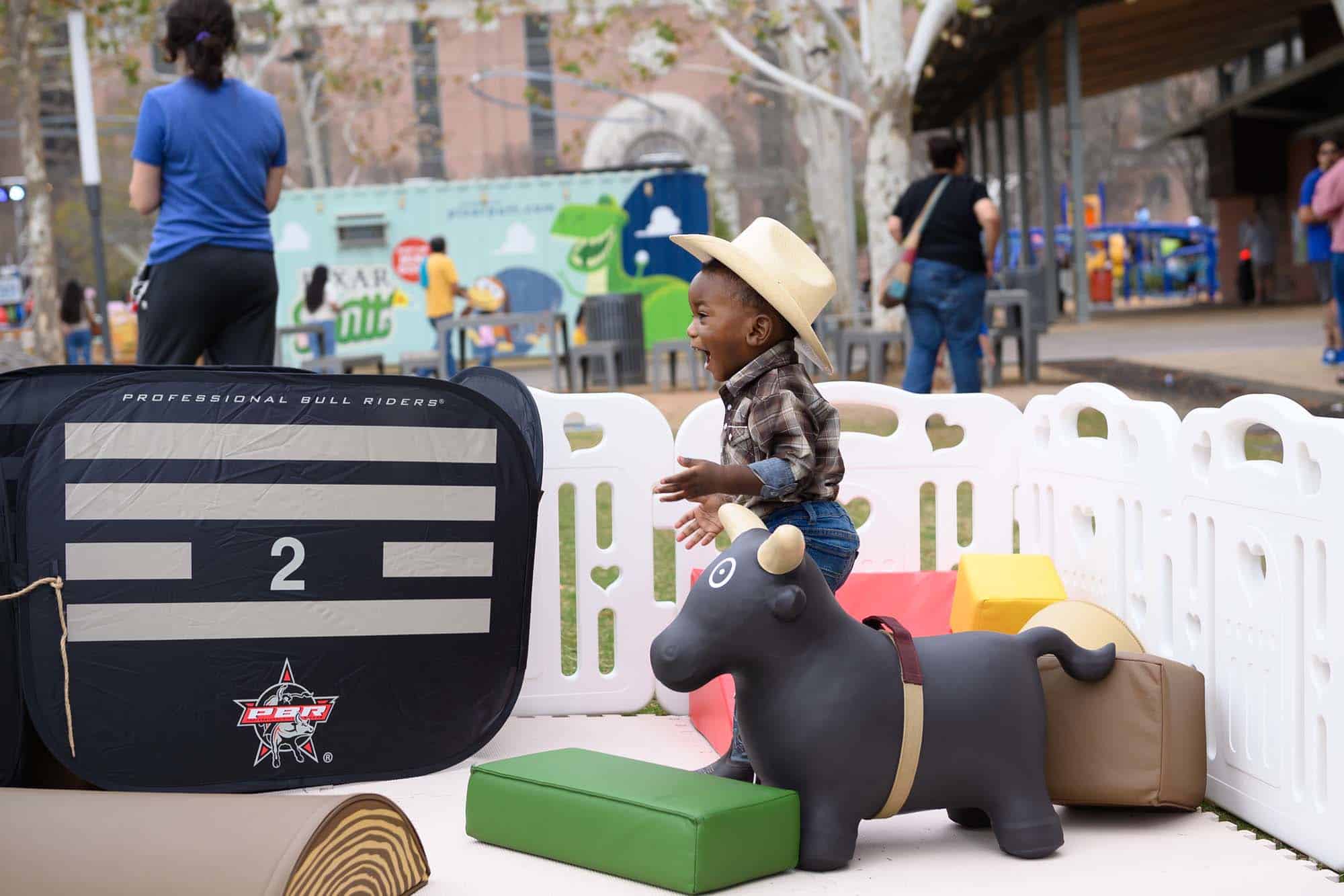 Toddlers and their caretakers enjoy a morning of interactive story time, costumed character meet and greets, activities, and soft play equipment from Toddler Towns and activities from Collab Lab.